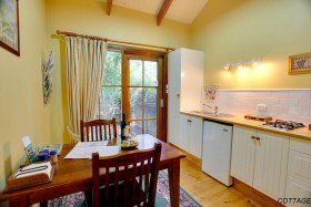 The guest cottage at Glenview Retreat is divided into two cosy apartment-style suites that have their separate entrances off the Australian bull-nose front verandah. Greenery envelopes the building and each suite has its own private courtyard garden. The leafy canopy of surrounding gum trees is frequented by many native birds including Rosellas, King Parrots, Galahs and Cockatoos.