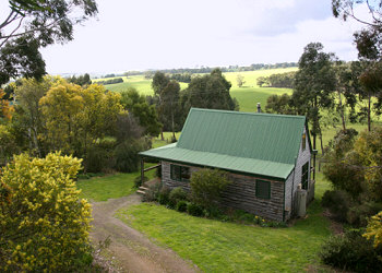 In the peaceful farmlands below the Otways, a 20 minute scenic drive from seaside Lorne, discover these affordable, pet-friendly country cottages, with their unusual, wavy-edged cypress timber clad exteriors.