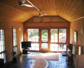 The Dairy has joined the collection of cottages. A renovation has transformed the original dairy, a basic brick building, into a romantic retreat for two. The walls have been bagged, a deck and lots of windows added, but the centrepiece is a sunken spa in the middle of the living room close to the fire and the television.