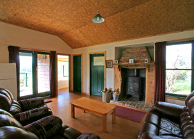 The working property is engaged in farming cattle and forestry, as well as a few designated acres devoted to country cottage accommodation for visitors to the region. It started with the original farm cottage and expanded as a further four buildings were constructed, each in its own private, fenced setting. Natural wavy-edged cypress timber cladding gives the cottages their very distinctive appearance. Together with green roofs and painted trim they sit sympathetically in their now mature, native garden surroundings. A few goats help keep the grass down in front of the cottages. Moreover, concern for the environment is demonstrated in the use of green electricity and of timber grown and milled on the property, supplemented with handpicked recycled timber. 20,000 trees were planted for the property's ongoing firewood and building needs. Each cottage has a wood fire plus most have reverse cycle air-conditioning/heating.